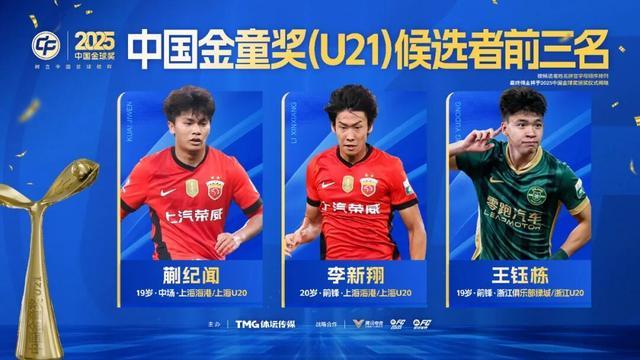 2025中国金童奖(U21)候选者前三名:蒯纪闻、李新翔、王钰栋